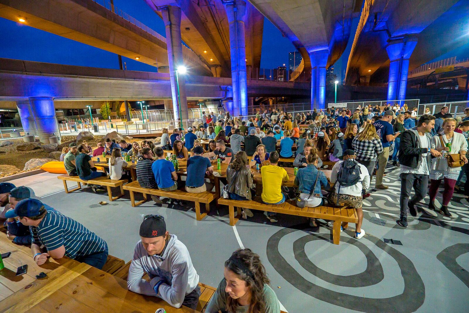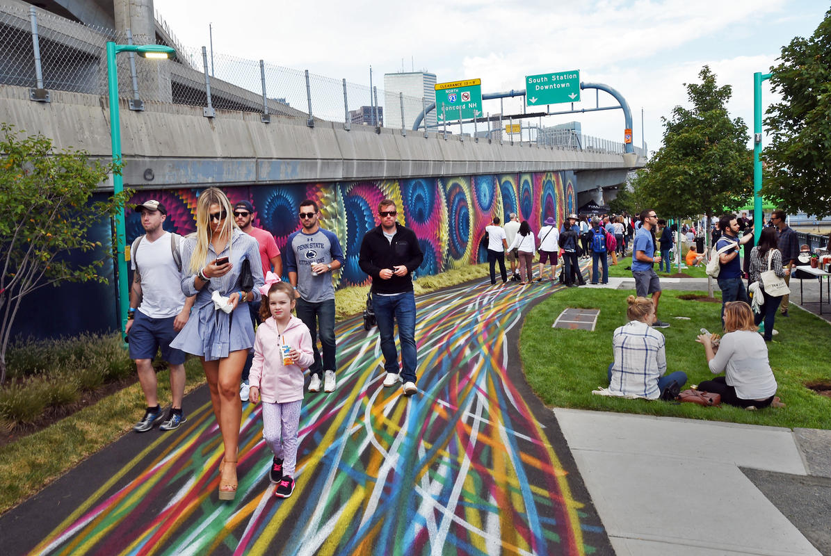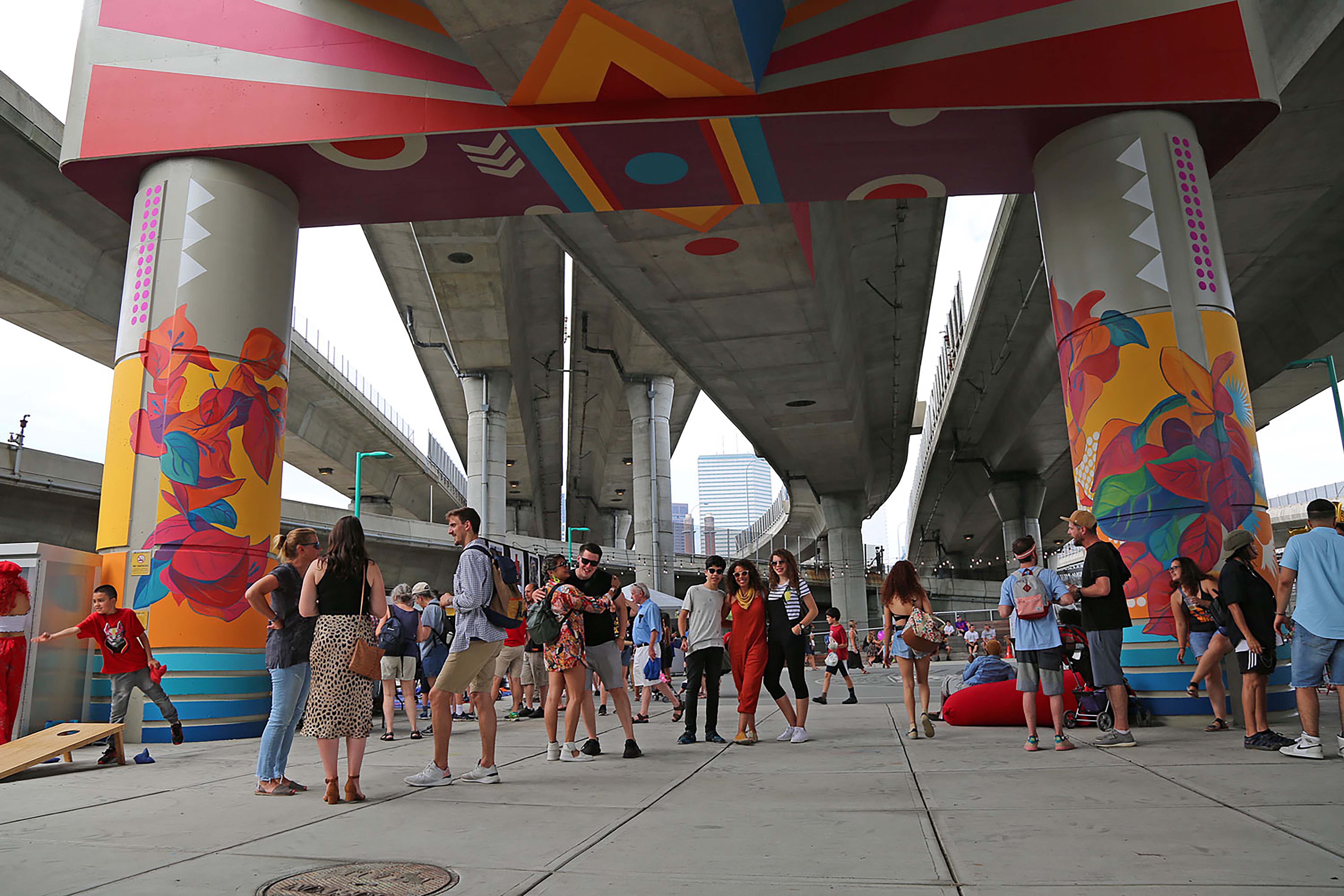 Underground at Ink Block is the successful transformation of an 8-acre underpass located between Boston’s South End and South Boston neighborhoods into an active urban park, public art project, cultural attraction and parking amenity. Landscaped pedestrian boardwalks and bicycle paths along the Fort Point Channel create new connections between communities previously separated by highway infrastructure. Visitors enjoy amenities such as world-class street art, a dog park, and curated public events.
