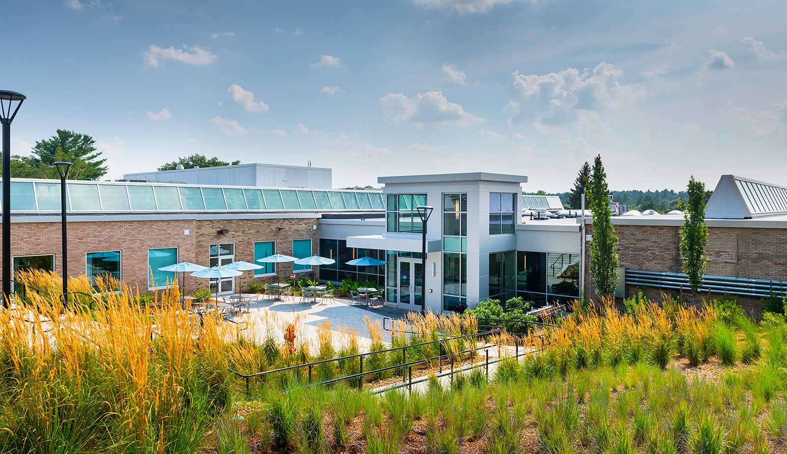 After acquiring Crosby Corporate Center, a nine-building, 52-acre office park located in Bedford, Massachusetts, National Development performed significant upgrades including rebranding; new entries and lobbies at Buildings 20/22, 26 and 28; facade updates; new courtyards and landscape improvements at Buildings 20/22, 26 and 28; new signage; and new park-wide amenity improvements including a new game room, food service enhancements, conference room upgrades and additional parking.