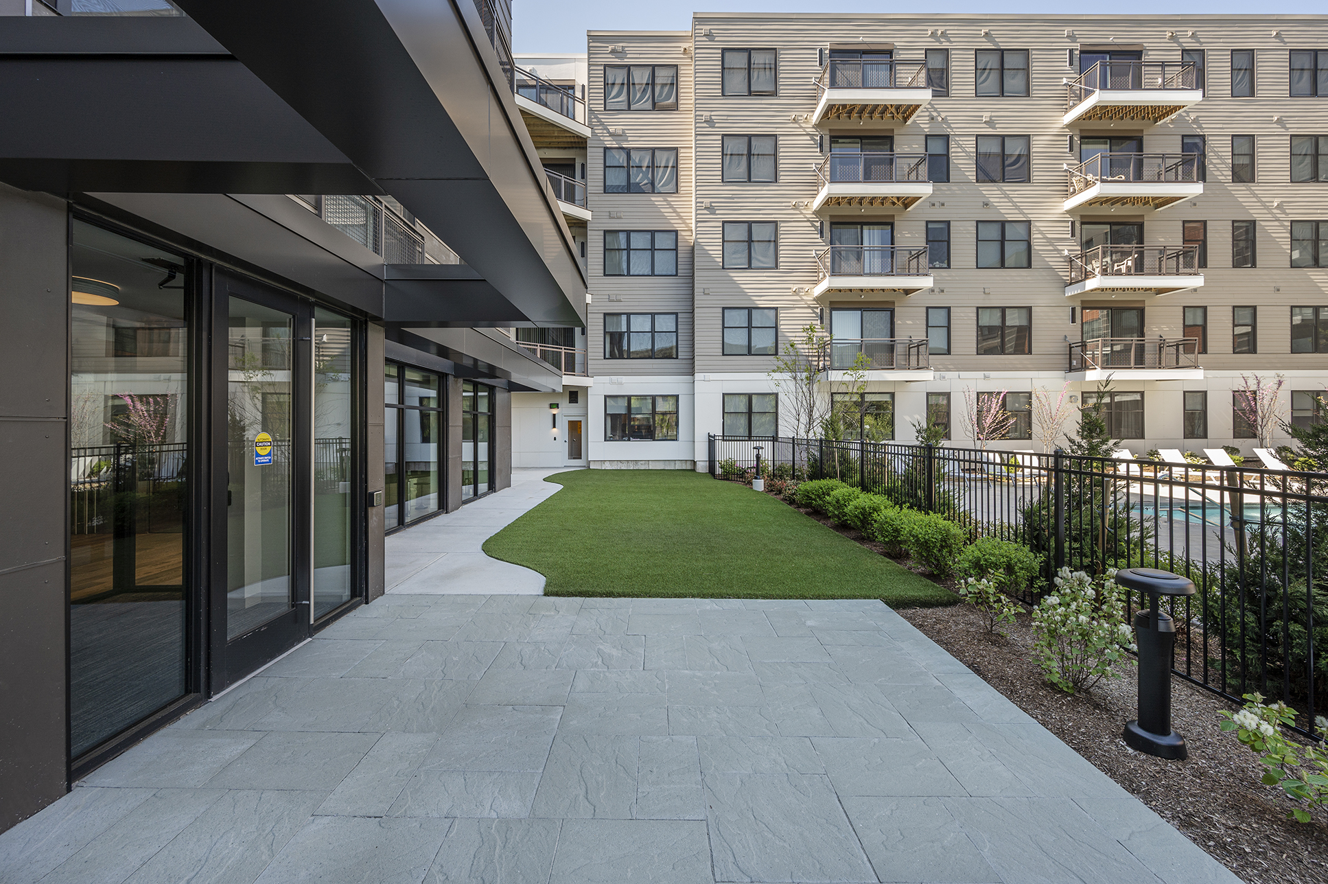 Emery Flats is a 224,000 SF, 200-unit residential community in Woburn, MA. The property features a mix of unit types including studios, one, two and three-bedroom units. There are 150 market-rate units, 50 affordable units and 303 parking spaces in the project. Amenities include a fitness center, resident lounge and gaming space, business/co-working space, indoor/outdoor flex space for fitness programming, full display kitchen, common area Wi-Fi service, and a full pool deck with an outdoor grill station, curated landscaping, and a fire pit.