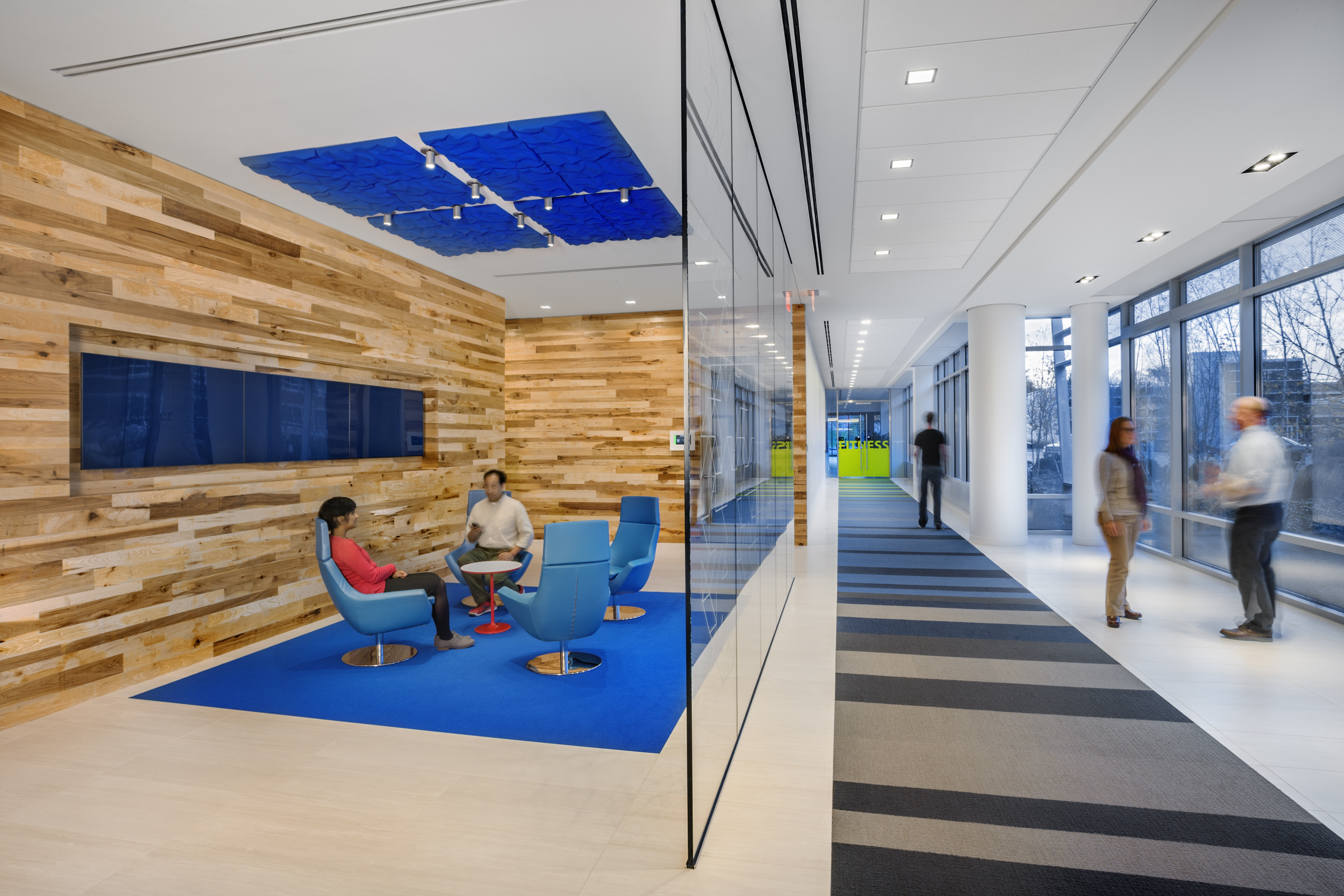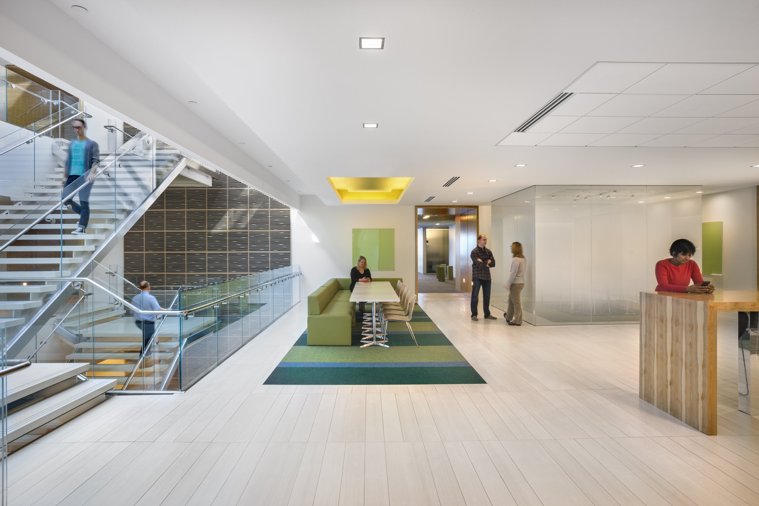 National Development worked for nearly a decade with MathWorks to provide development and construction management services for its campus expansion. The multiple phases included adding a fourth level to an existing precast garage, demolition of an existing 25,000 SF building, and new construction of a 176,000 square foot, four-story office building and a four level, 855-space parking garage. Additional scope included significant site work and landscaping efforts to create a park-like pedestrian “quad” area joining the new facilities to the existing three-building campus, and off-site road improvements along Route 9, including a new traffic signal. MathWorks new office space features the latest in sustainable office building design as well as specialized corporate amenities and an open, flexible floor plan that emphasizes collaboration and communication.