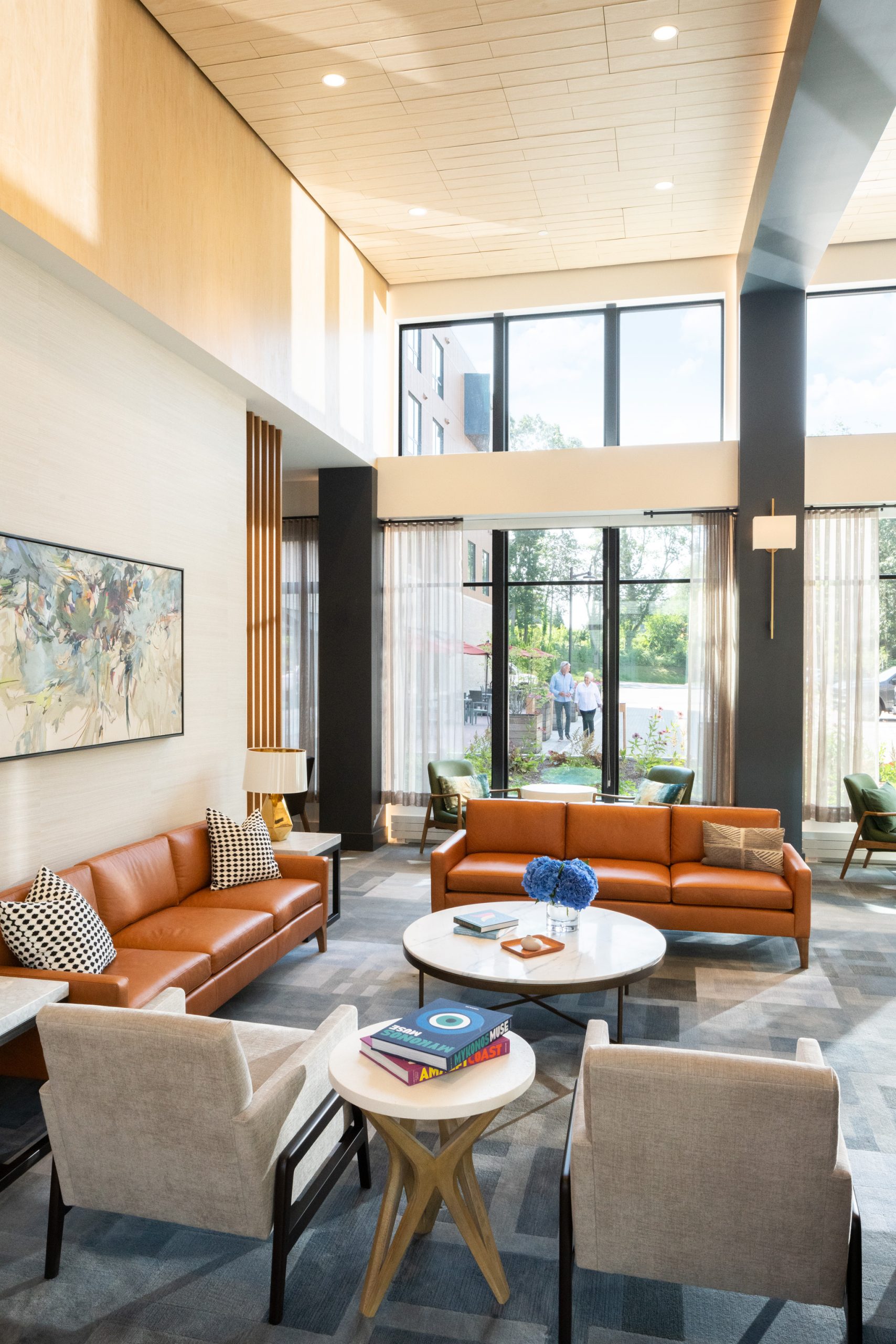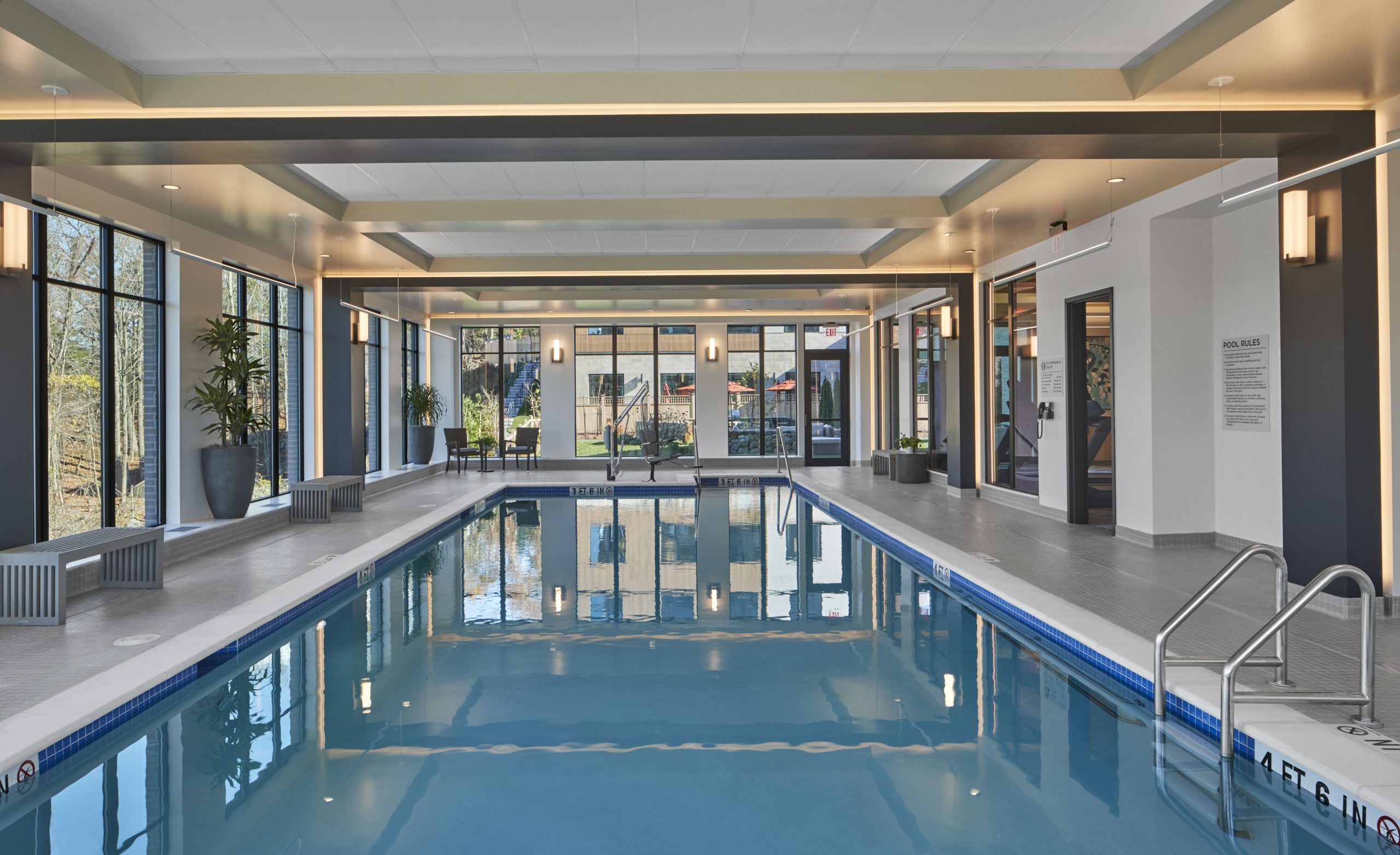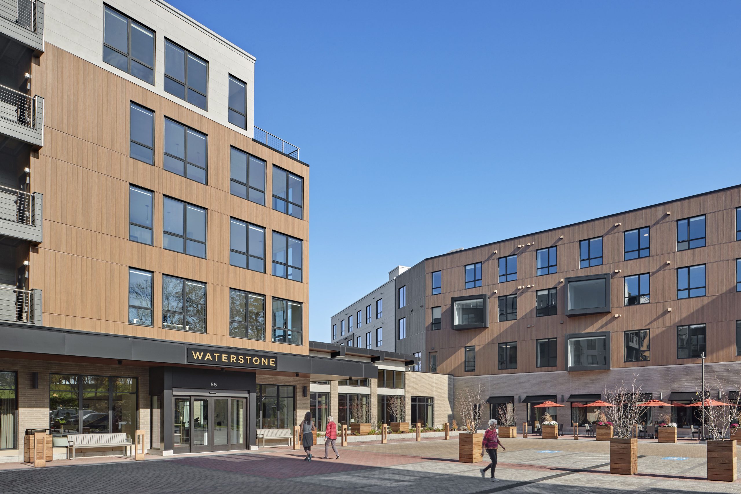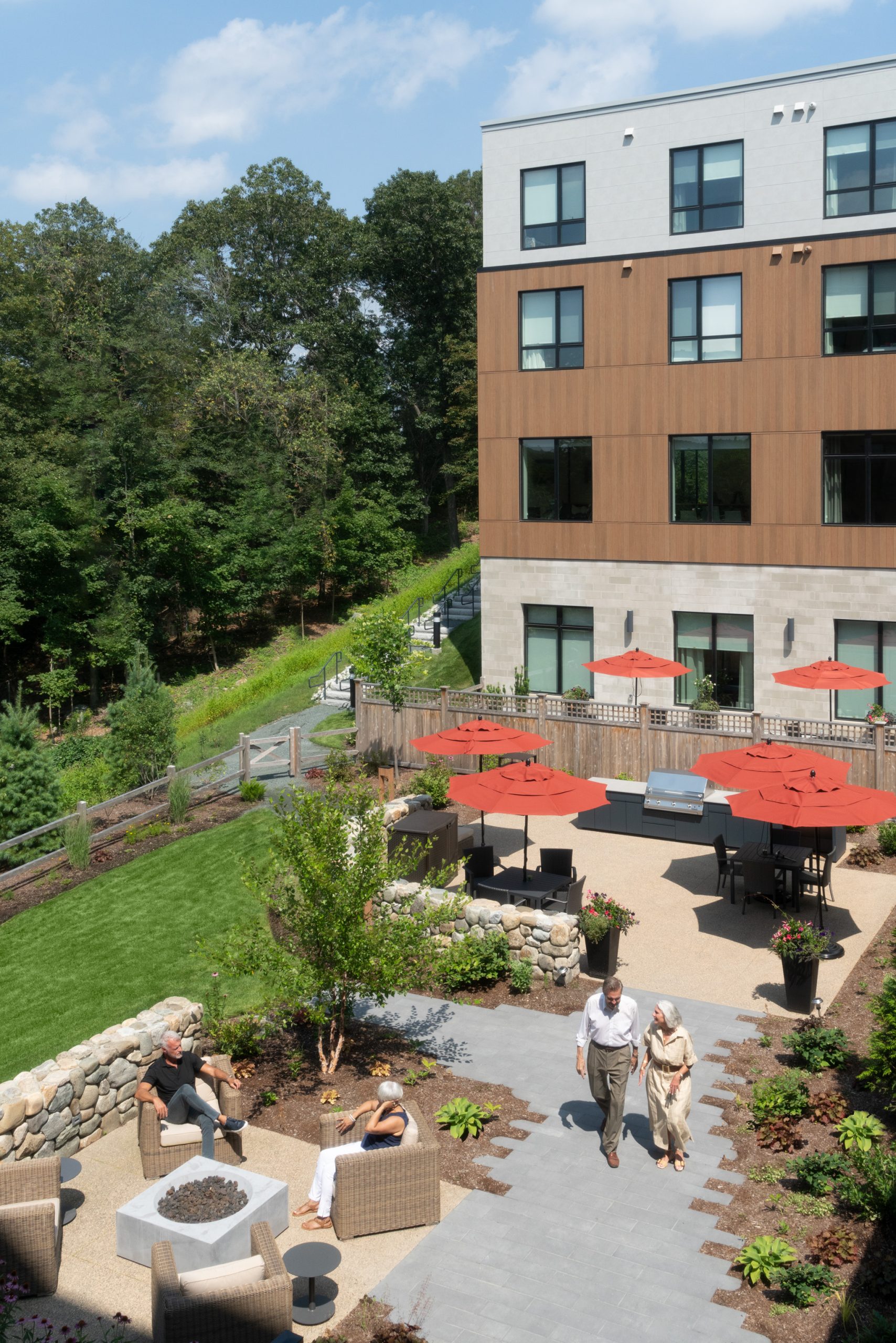 National Development recently completed a senior living community in Lexington, MA in partnership with Epoch Senior Living. The new Waterstone and Bridges provides a full continuum of care across 204 units in two buildings, offering assisted living, independent living and memory care in a scenic woodland setting abutting substantial conservation areas and the Belmont Country Club. Features include high-end interior and exterior finishes, state-of-the-art design and abundant amenities such as indoor heated pool, bar and lounge area, theater, library, maker space, outdoor courtyard with kitchen and fire pit, putting green and fitness area. Both buildings are LEED Silver certified. The project began construction in April of 2020, Bridges opened in June of 2022 and Waterstone opened to first residents in October 2022.